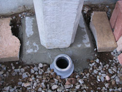 シンクになる部分にはジュラストーンを配置。はじめ砂利を付き固めて、モルタルを入れています。